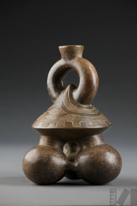 Botella de base trípode con motivos estilizados