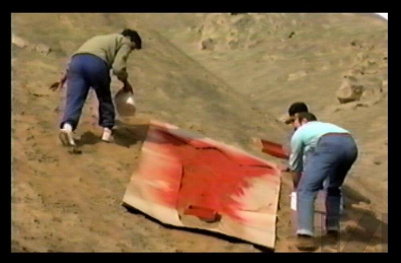 DescripciónRegistro de la intervención pictórica y gestual de Ricardo Wiesse el 27 de junio de 1995 en la quebrada de Cieneguilla donde se pretendieron ocultar los restos de los diez desaparecidos de la Universidad Nacional de Educación Enrique Guzmán y Valle "La Cantuta"