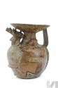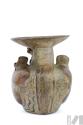 DescripciónPaccha con representación de escena ritual con la participación de un oficiante masculino y dos mujeres acólitas