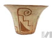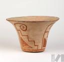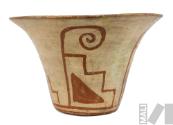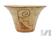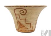 Vasija pictórica con diseño de motivo escalonado, triángulo y voluta