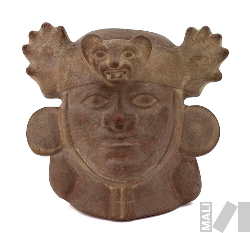 Vaso con representación de cabeza de personaje con tocado con rasgos de felino