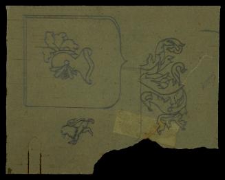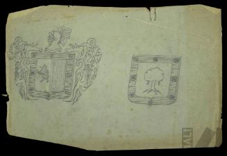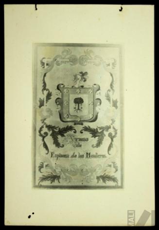 DescripciónObra de formato rectangular vertical. Composición en base a parte derecha de escudo de armas, esta tiene diseños de lambrequines con indicaciones que dicen: "ORO", "PLATA"ESTATUS
