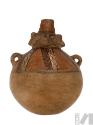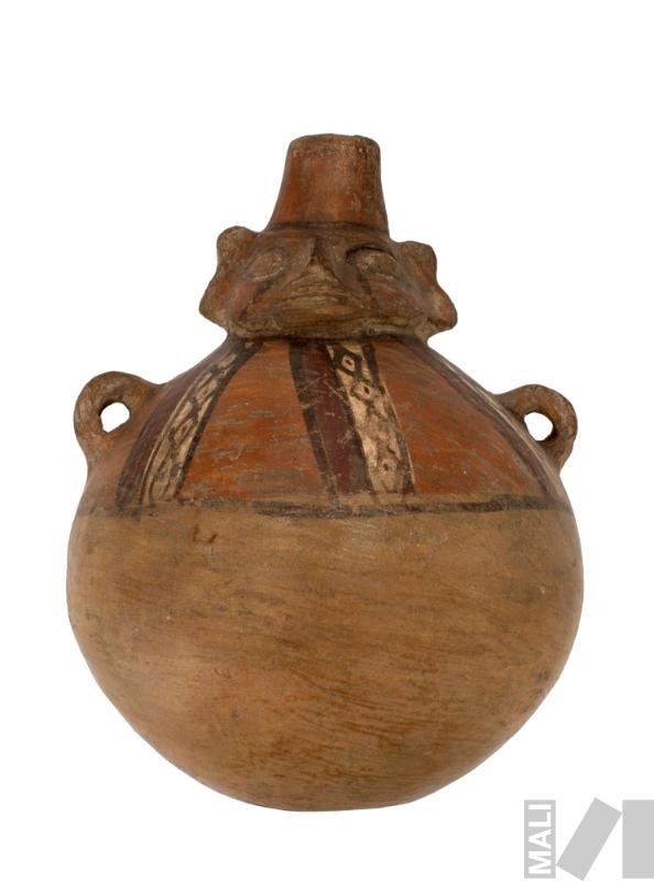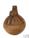 Botella de cuello efigie con rostro antropomorfo y diseños geométricos