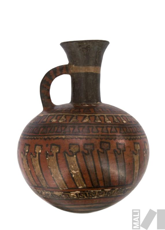 Botella con diseños pictóricos geométricos y motivos de remo para navegación