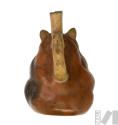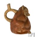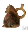 DescripciónVaso con asa lateral de base llana. Escultórica de diseño ornitomorfo (búho), en el rostro se aprecian diseños geométricos (líneas y puntos).ESTATUS
