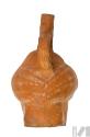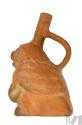 DescripciónBotella de asa lateral y base llana. Escultórica representando un búho antropomorfizado que tiene un objeto en la mano derecha y cuenta con una bolsa.ESTATUS