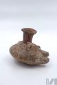 Botella (fragmento) de doble cuerpo con personaje antropomorfo tocándose la cabeza