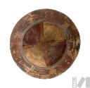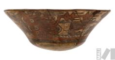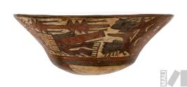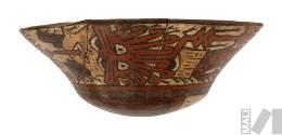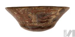 DescripciónPlato con representación pintada de ser mítico antropomorfo estilzado en posición de vuelo.ESTATUS