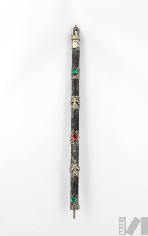 Madera tallada con aplicaciones de plata repujada y vidrio
