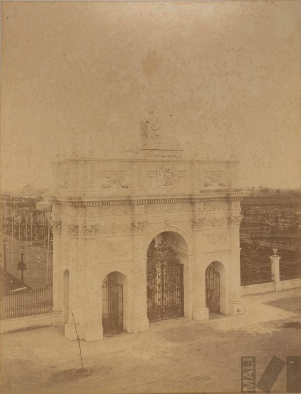 Parque de la Exposición, puerta de la alameda frente a la Penitenciaría. Álbum Exposición de Lima