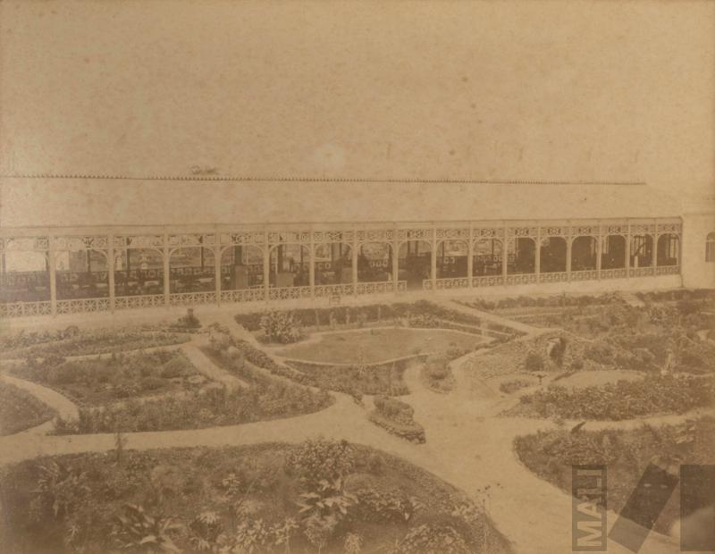 Salón de máquinas y dirección en el Parque de la Exposición. Álbum Exposición de Lima.