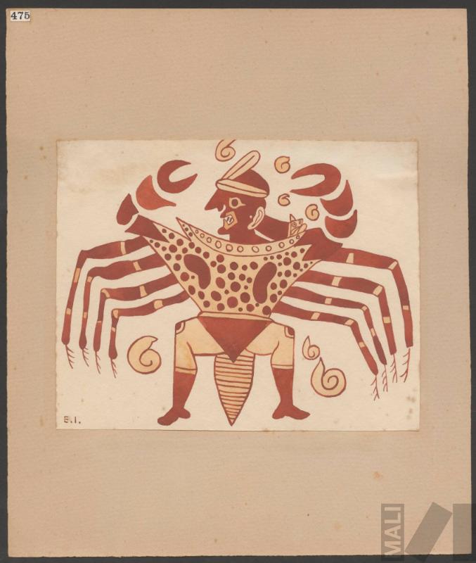 DescripciónObra en formato rectangular horizontal. Composición en base a representación iconográfica de deidad antropomorfa en fondo crema.ESTATUS