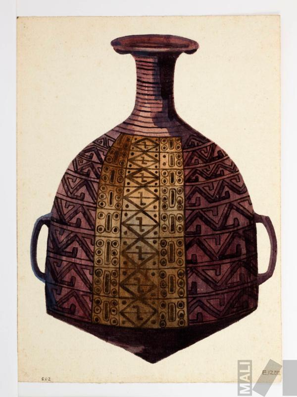 DescripciónObra de formato rectangular vertical. Composición en base a representación de aríbalo incaico decorado con formas geométricas.