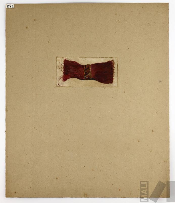 DescripciónObra en formato rectangular horizontal. Composición en base a representación fragmentaria de hebras de textil decorado en la parte central con olas en tonos negro y ocre.ESTATUS