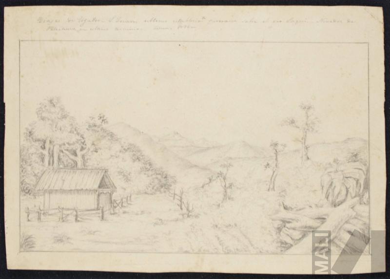 S. Juan, último establecimiento peruano sobre el río Jaqui. Nevados de Pelechuco en último término