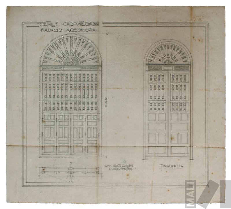 Diseño de puerta para el Patio de Guerra. Palacio de Gobierno, Lima