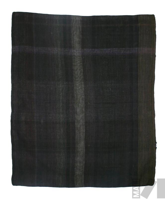 DescripciónTejido llano en fibra de alpaca con cara de urdimbre; pampa jaspeada varios tonos de morado (urdimbres morado/negro, otras negro, algunas partes negro/beige); ribete negro; trama partes negro, otras jaspeada como la pampa; pampa modulada de manera muy especial; partes en SSZ; ribete tejido