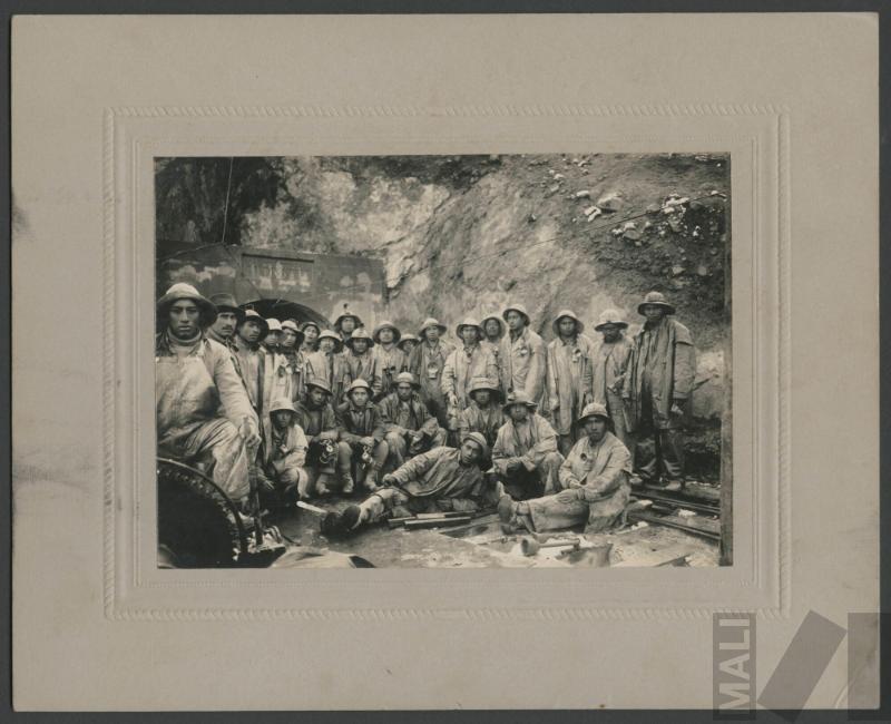Trabajadores en entrada de mina