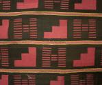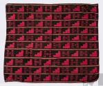 DescripciónUrdimbres de algodón y tramas en fibra de camélido en técnica cara de trama, tapiz cola de milano y tapiz enlazado para los diseños. Manta o lliclla de campo oscuro con diez secuencias horizontales de motivos escalonados y en forma de "H" intercalados en color rojo, con intersticio en banda listada de color.ESTATUS