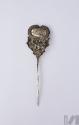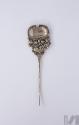 DescripciónPrendedor en forma de agua, remate de contorno mixtilíneo resuelto en cuerpo ovoide con diseño vegetal en volutas con puntillismo sostenido por un calado compuesto de flores y rocallas. En la base: diseño foliar con agujero. Vástago tubular de terminación aguda.ESTATUS