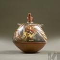 Botella con representación de Ser Mítico Antropomorfo con cuerpo de serpiente y arañas