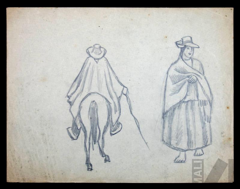 Estudio de mujer indígena y jinete