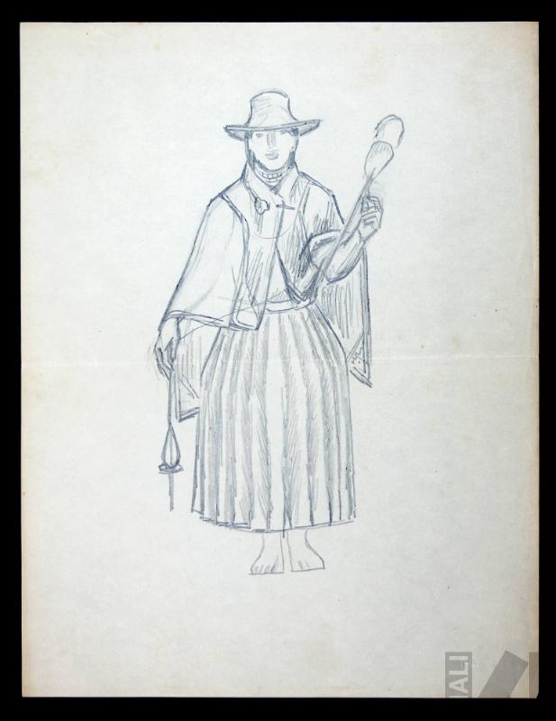 Estudio para acuarela 'Indumentaria de la india de Cajamarca'