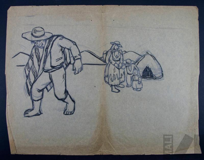 Estudio para afiche de la Dirección de Enseñanza Indígena del Ministerio de Instrucción