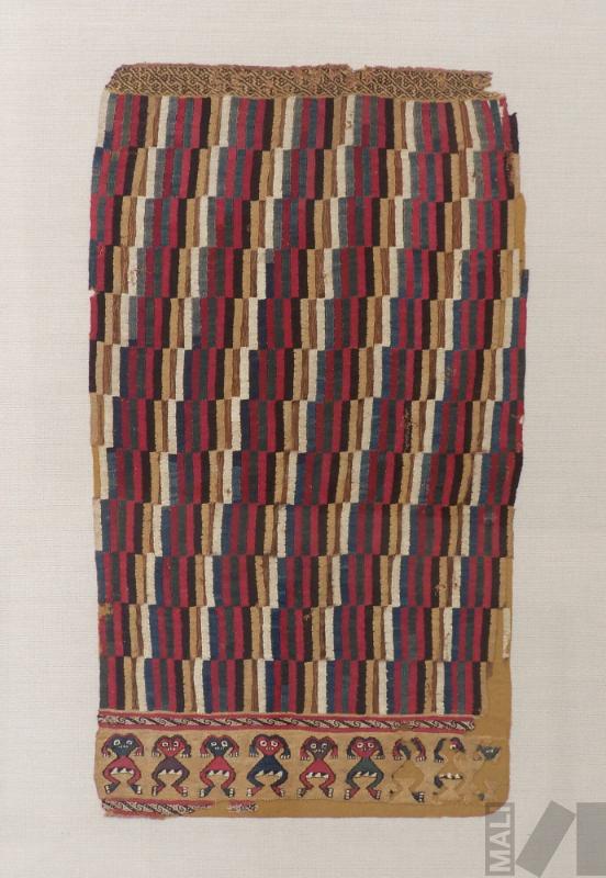 Paño con decoración de listas diagonales y motivos de figuras humanas