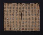 DescripciónUnku monócromo compuesto por dos paños de tela llana con aplicaciones de láminas de metal en forma de peces y borlas en los extremos anterior y posterior de la pieza. Presenta costura en la parte centralESTATUS