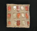DescripciónChuspa con aplicaciones de Spondylus, Strombus y concha de perla tallados en forma de peces y sujetos al textil. Se ordenan quince en cada cara dispuestos en filas y columnas. Presenta costura en los bordes lateralesESTATUS