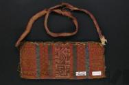 Chuspa polícroma de forma rectangular con diseños zoomorfos y geométricos