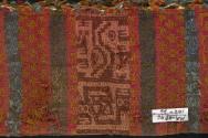 DescripciónChuspa rectangular con diseños de bandas y listas con serpientes bicéfalas, felinos con cuerpo aserrado con círculos y rombos escalonados concéntricosESTATUS