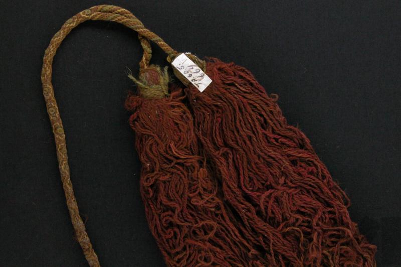 Uncu en tela llana con aplicaciones de borlas de cobre