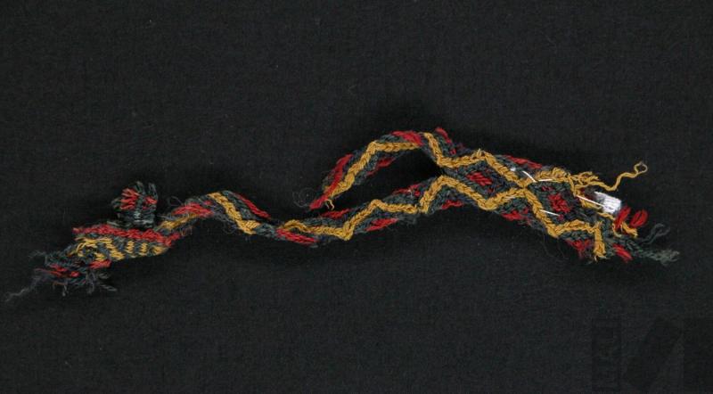 Fragmento de cinta polícroma con diseños de rombos y triángulos