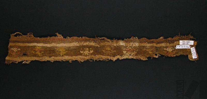 Fragmento de paño con decoración polícroma de personajes antropomorfos