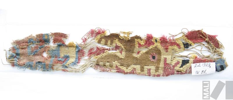 Fragmento de cinta polícroma con diseños geométricos