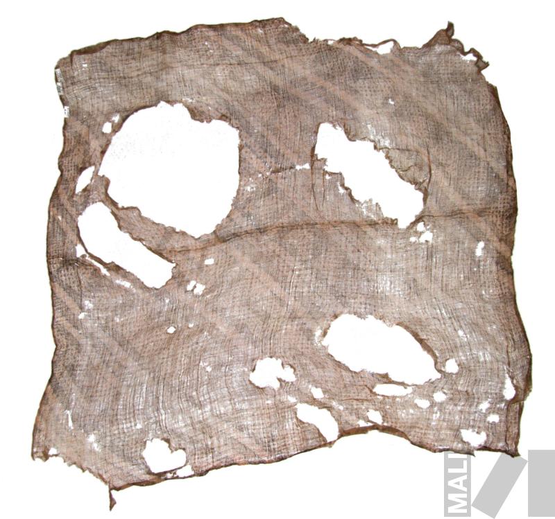 Fragmento de paño con decoración polícroma con diseños de cuadrados