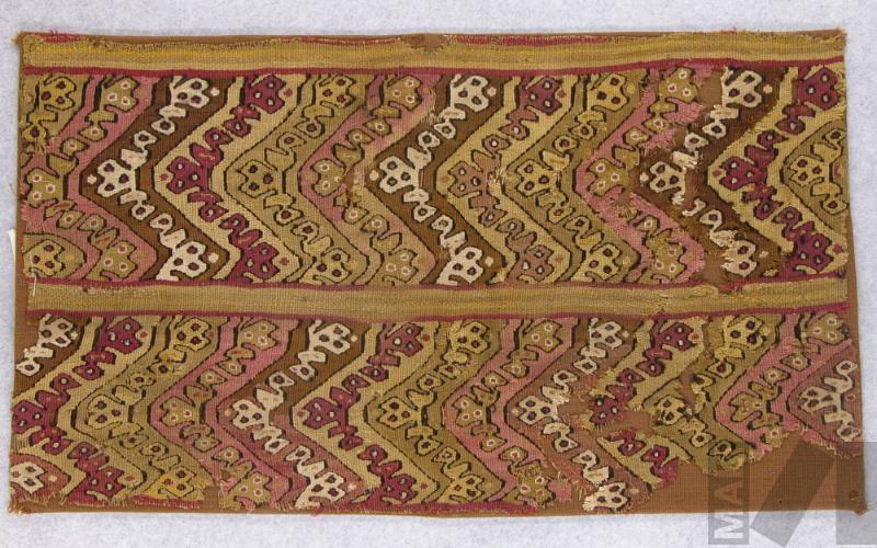 Fragmento de paño con decoración polícroma de diseños geométricos